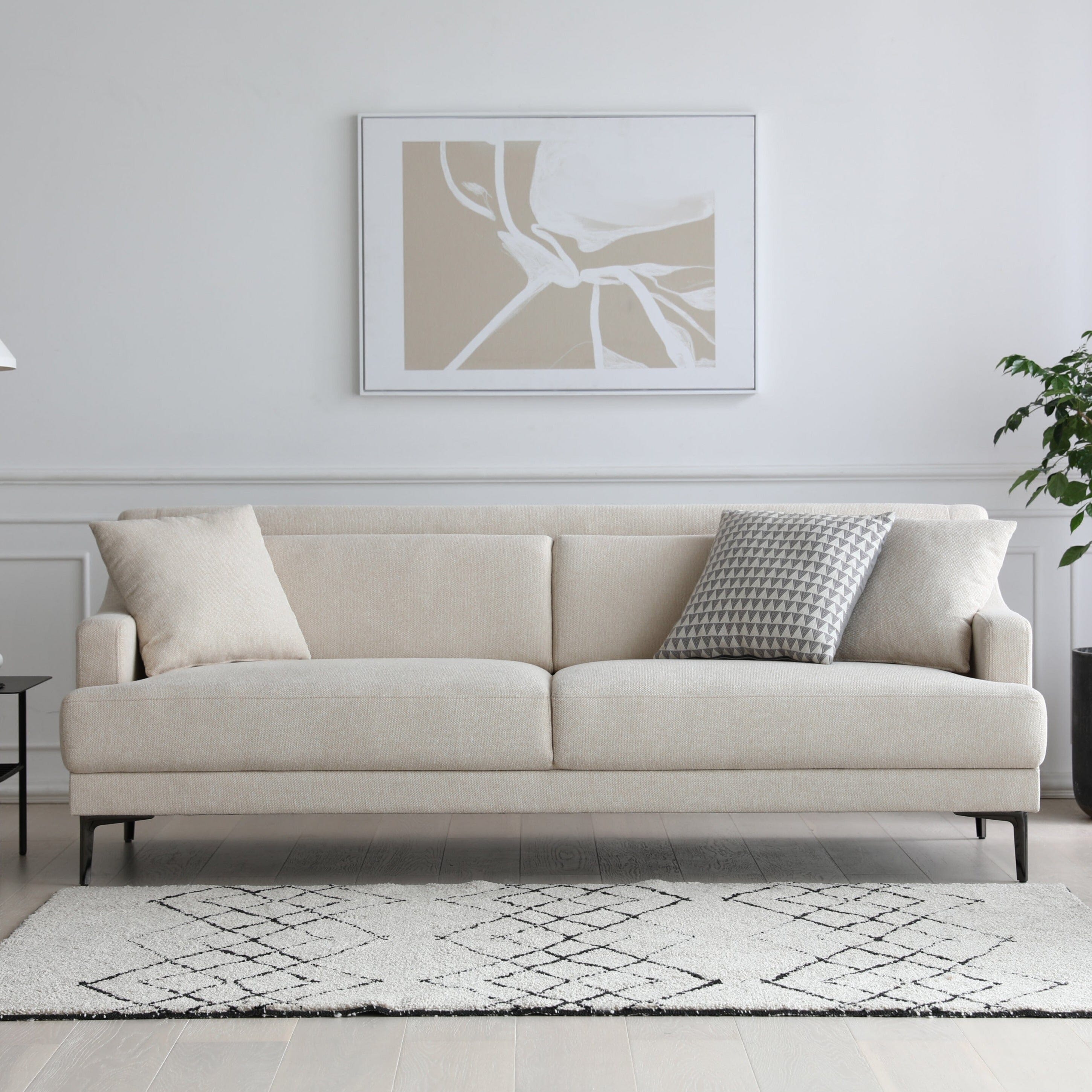 Crafted with a manufactured wood frame, this piece features a modern classic look, with its streamlined silhouette. Foam and fiber filling gives the cushions an inviting feel, while the fabric allows this sofa to be easily cleaned and maintained.