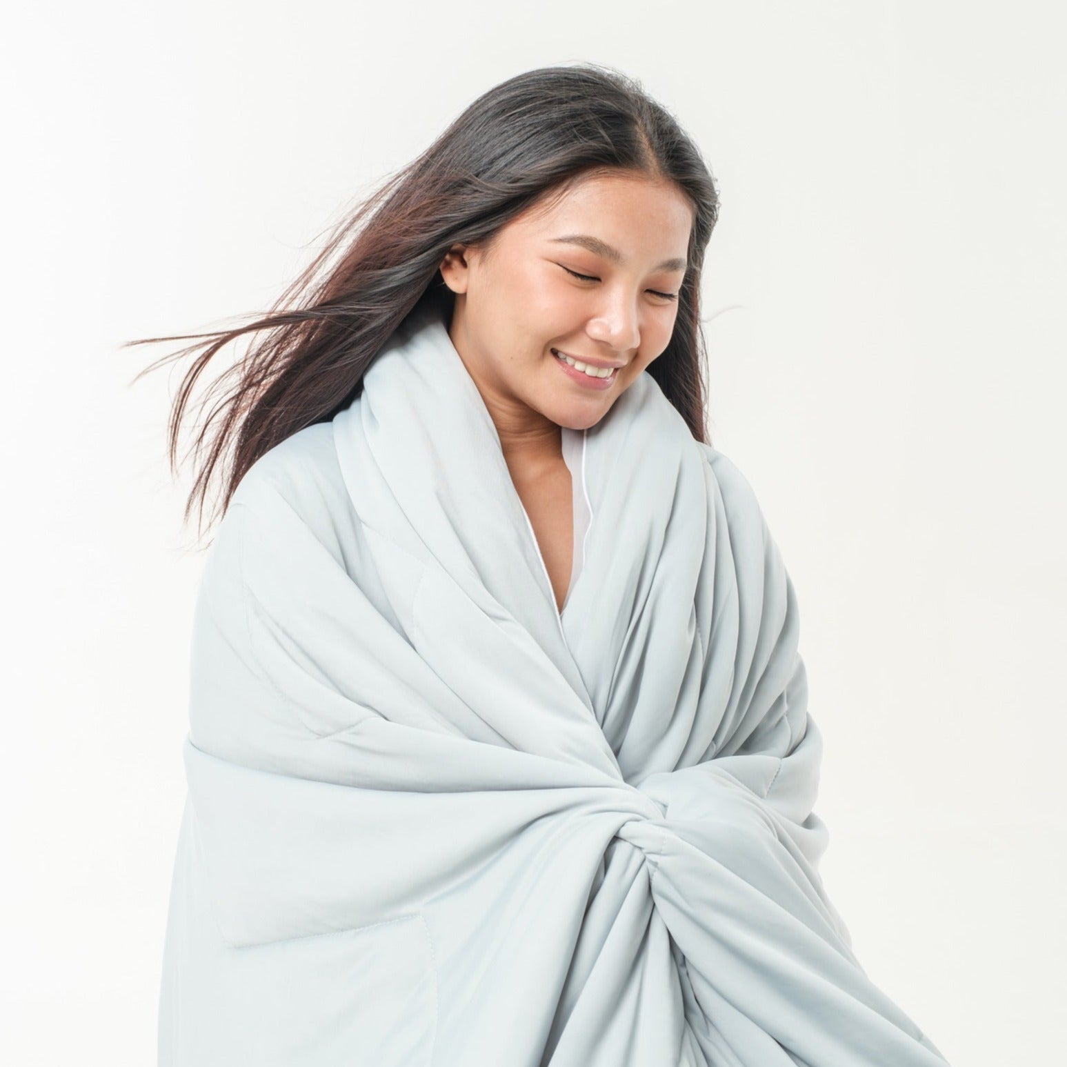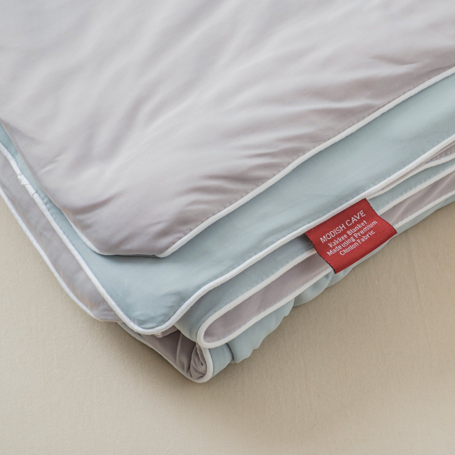 A harmonious blend of cool comfort and luxury. The king sized, Kakkee blanket is woven from the finest chinlon fabric, resulting in a touch that is luxuriously smooth and refreshingly cool. Uniquely designed, it offers the perfect balance of weight and breathability, making it your ideal partner for both warm & rainy seasons. Revel in the cool embrace of the Kakkee Blanket – where sophistication, unrivaled quality, and cozy elegance collide.